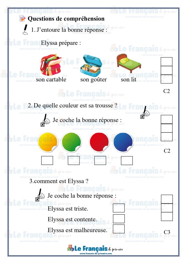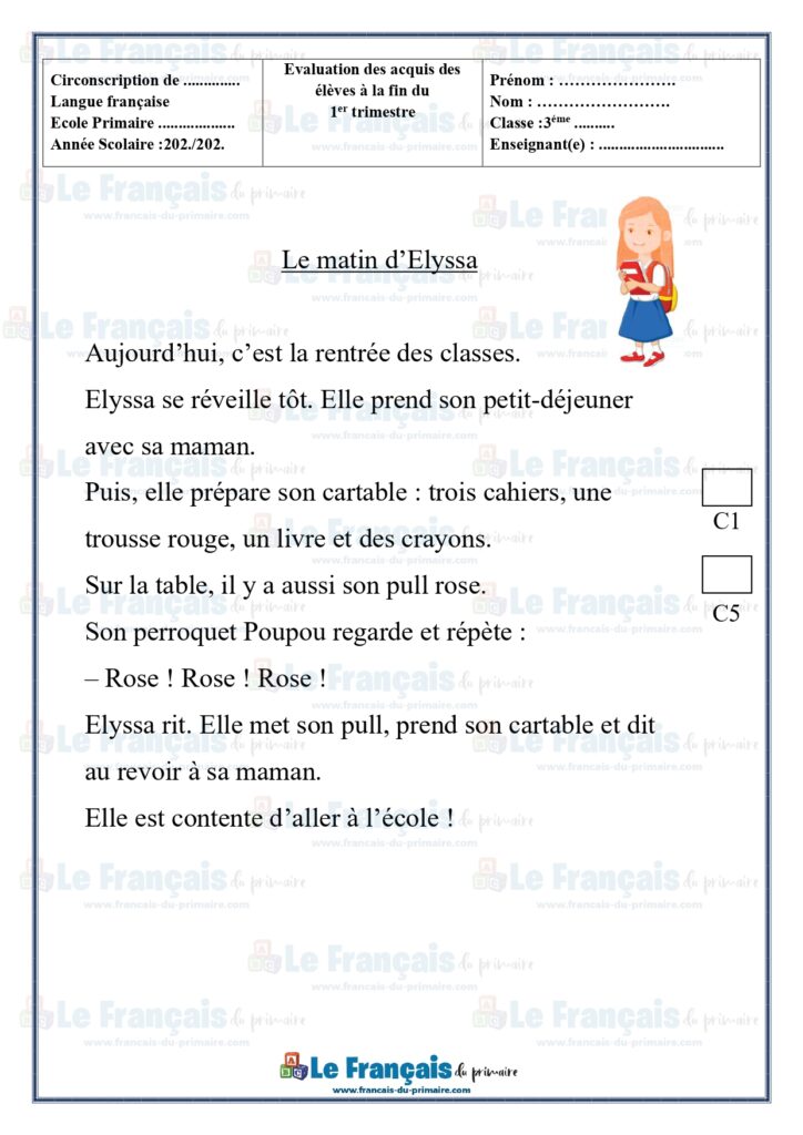 Examen de Lecture 3ème année Trimestre 1 : Le matin d’Elyssa