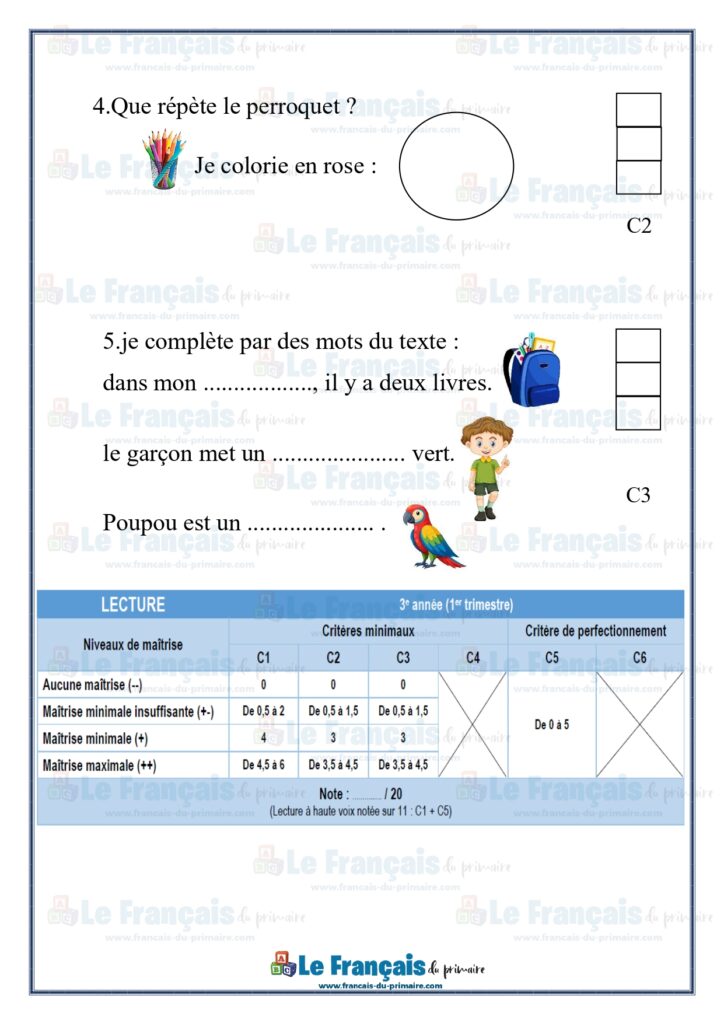 Evaluation des acquis des élèves de la 3ème année en lecture au terme du 3ème trimestre de l'année scolaire